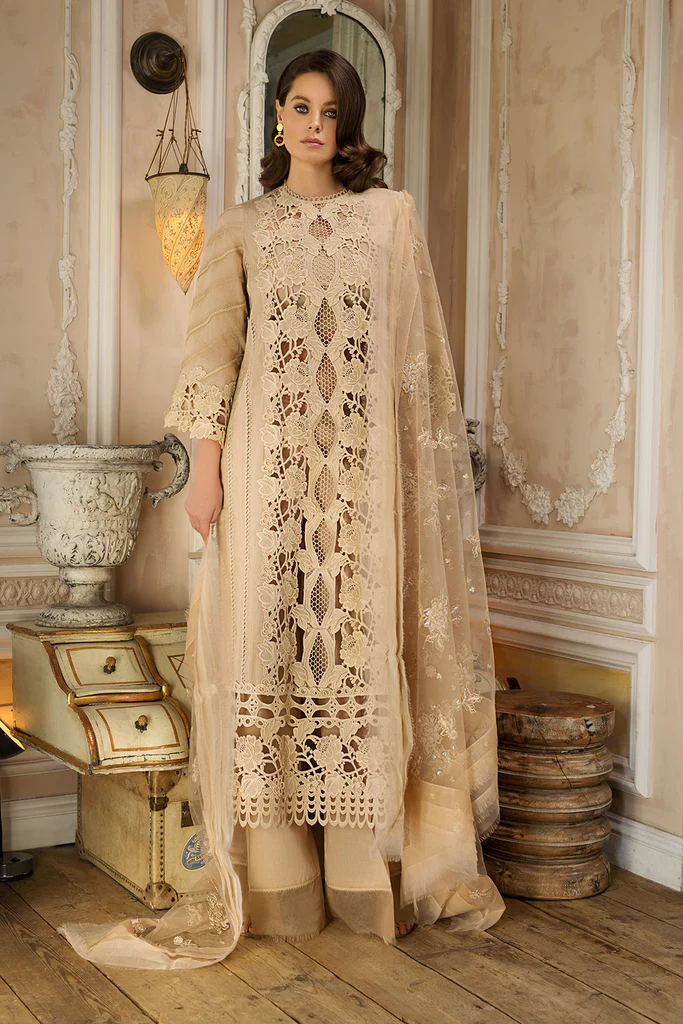 Unstitched Suit includes: Shirt Front Lace Daman Laces Embroidered Sleeve Lace Embroidered Net Dupatta Plain Dyed Side Panel Plain Dyed...