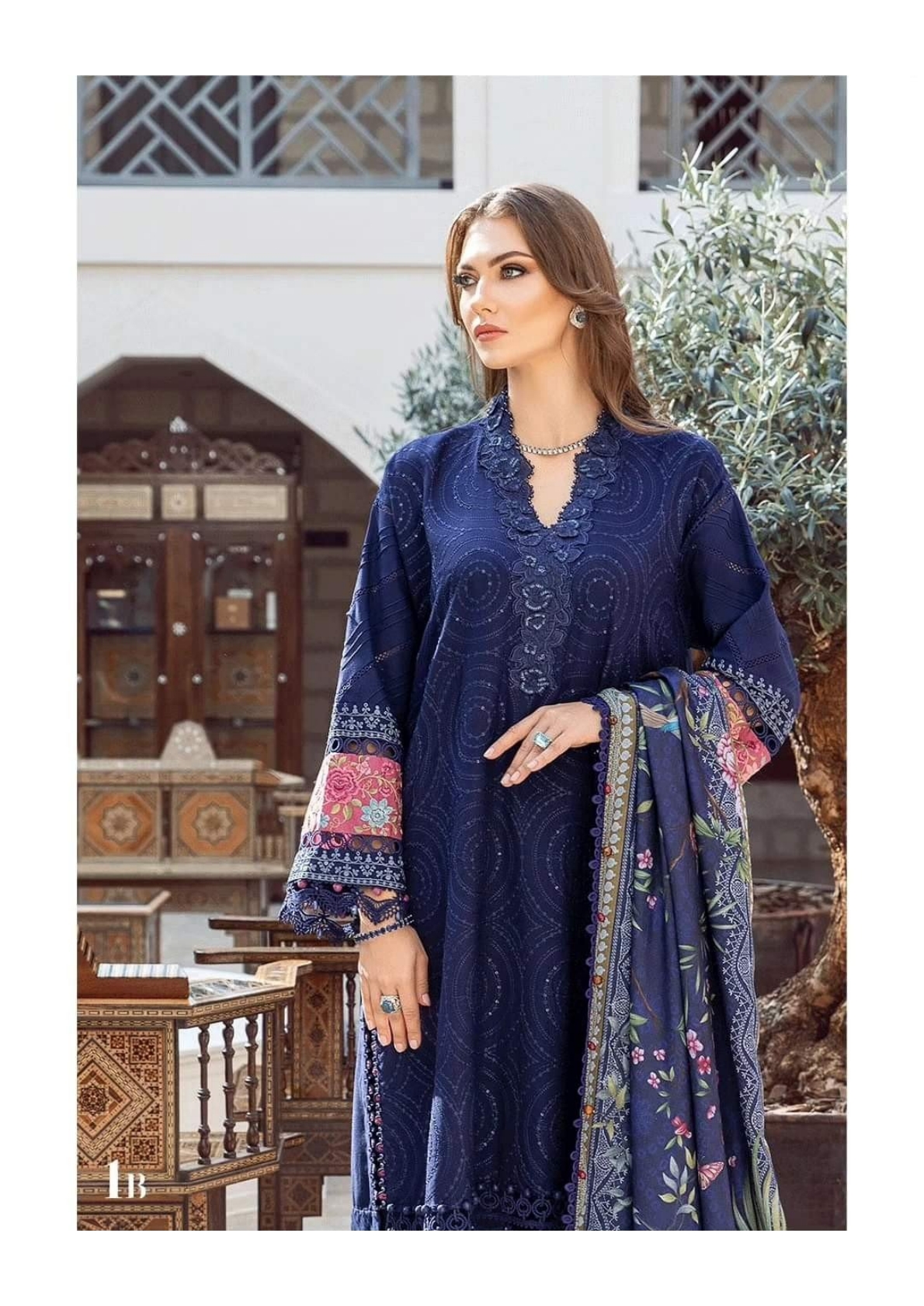 Embroidered lawn front with organza applique Dyed Lawn Back Embroidered Lawn Sleeve Burnout Organza Dupatta Center Dyed Cambric Trouser Embroidered...