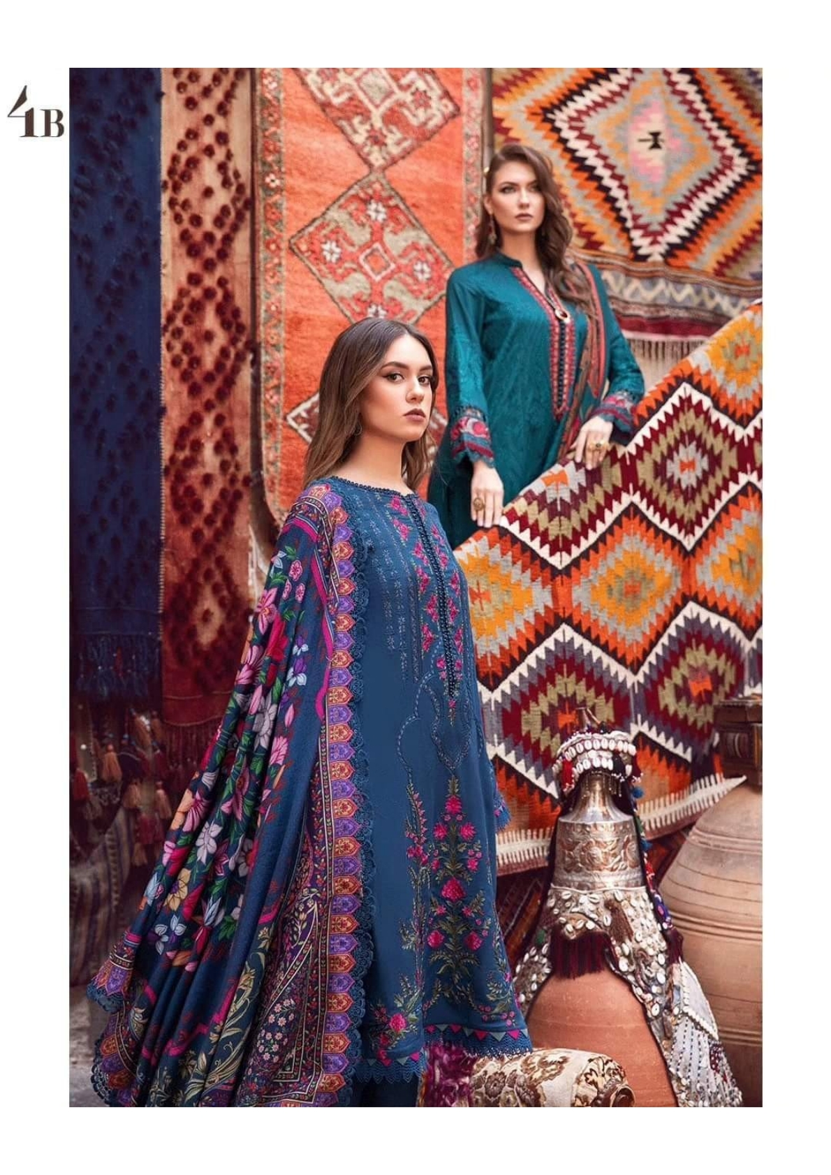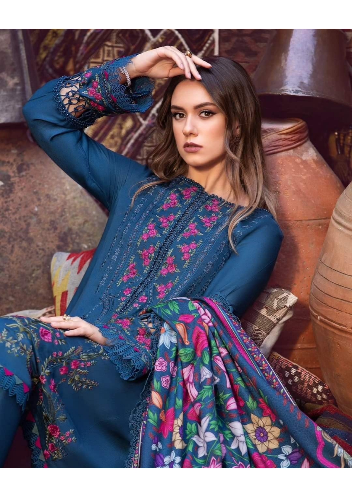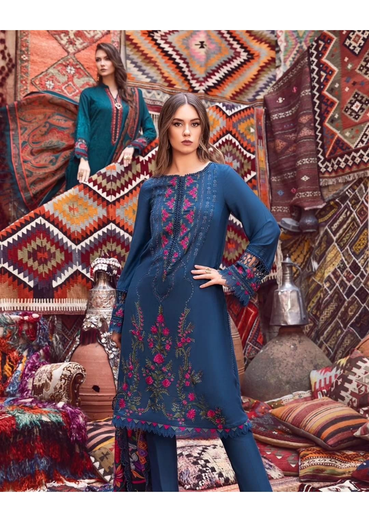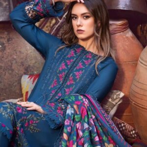 Embroidered lawn front with organza applique Dyed Lawn Back Embroidered Lawn Sleeve Burnout Organza Dupatta Center Dyed Cambric Trouser Embroidered...