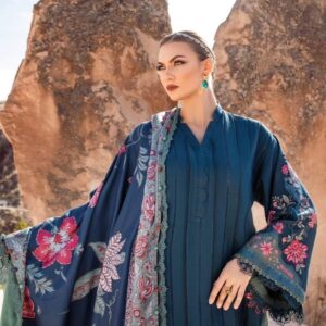 Embroidered lawn front with organza applique Dyed Lawn Back Embroidered Lawn Sleeve Burnout Organza Dupatta Center Dyed Cambric Trouser Embroidered...