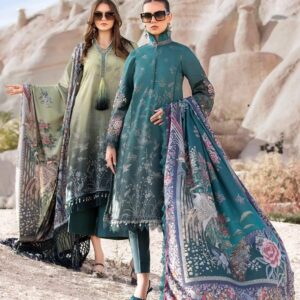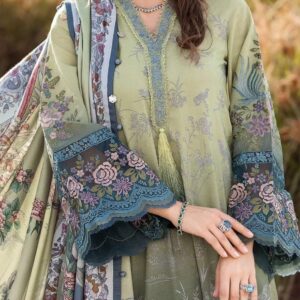 Embroidered lawn front with organza applique Dyed Lawn Back Embroidered Lawn Sleeve Burnout Organza Dupatta Center Dyed Cambric Trouser Embroidered...